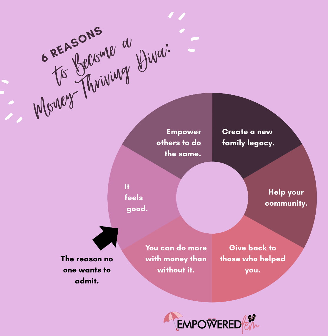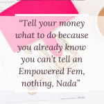Tell your money what to do because you already know you can’t tell an Empowered Fem, nothing, Nada. Money is not going to tell you where it needs to go every month; instead, it is going to go straight to where you assign it to go. If you are telling money where to go, you are in control. When you know where your money is going each month, then it’s probably because you already wrote down on paper your monthly game plan, aka your budget. (Yup…I said the B-word.) Stick to the game plan. Create and revise your game plan as needed and write all expenses down. EVERY ONE OF THEM, BEAUTIES. That means the gum at the checkout counter, the soda from the vending machine, the tip with you Starbucks. Doing this will shine a light on where you might be spending more than you need to. It could be on entertainment, shopping, or just that daily coffee run.