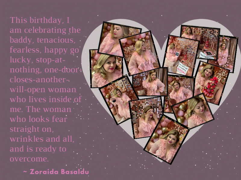 Honestly, this year, I am feeling truly accomplished, powerful, and so proud of myself and this woman I have become. This woman who does it all on her own, without depending on anyone’s approval. This birthday, I am celebrating the baddy, tenacious, fearless, happy go lucky, stop-at-nothing, one-door-closes-another-will-open woman who lives inside of me. The woman who looks fear straight on, wrinkles and all, and is ready to overcome.